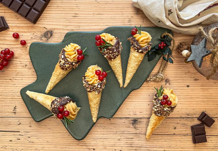 Coronas de hojaldre y chocolate