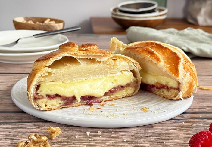 Aperitivo de camembert en hojaldre con mermelada de frambuesa